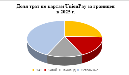 Объемы трат россиян за рубежом за 10 месяцев 2025 года по картам UnionPay выросли на 81,7% к аналогичному периоду прошлого года. По состоянию на 2025 год число клиентов с тратами по картам UnionPay увеличилось в 2,5 раза.