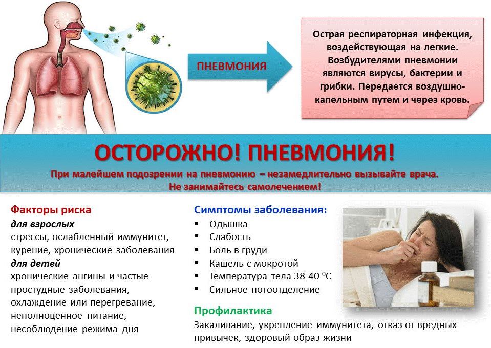 Помните, что наибольшему риску развития пневмонии подвержены дети раннего возраста, пожилые люди, а также граждане, имеющие хронические заболевания (сердечно-сосудистой системы, бронхов и легких, сахарный диабет и др.). Именно им следует с особым вниманием относиться к мерам профилактики.