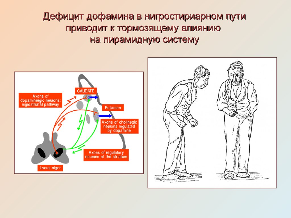 В основе заболевания лежит гибель нейронов чёрной субстанции – той самой области, где вырабатывается дофамин.