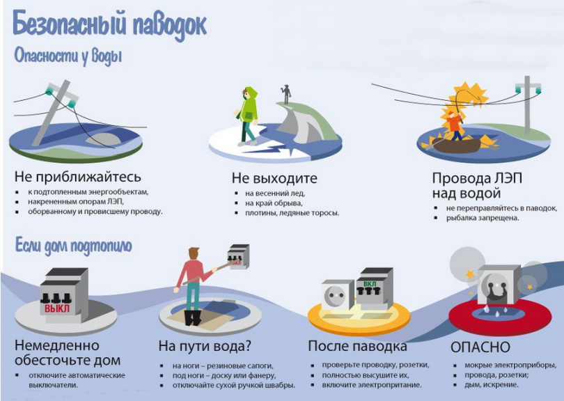 Весеннее половодье, повышение уровня воды может вызвать различные повреждения электрооборудования. Ослабление несущей способности грунтов, возможные оползни и подмывы фундаментов опор ЛЭП, подтопления электроустановок, которые, в свою очередь, представляет угрозу в виде поражения электрическим током.