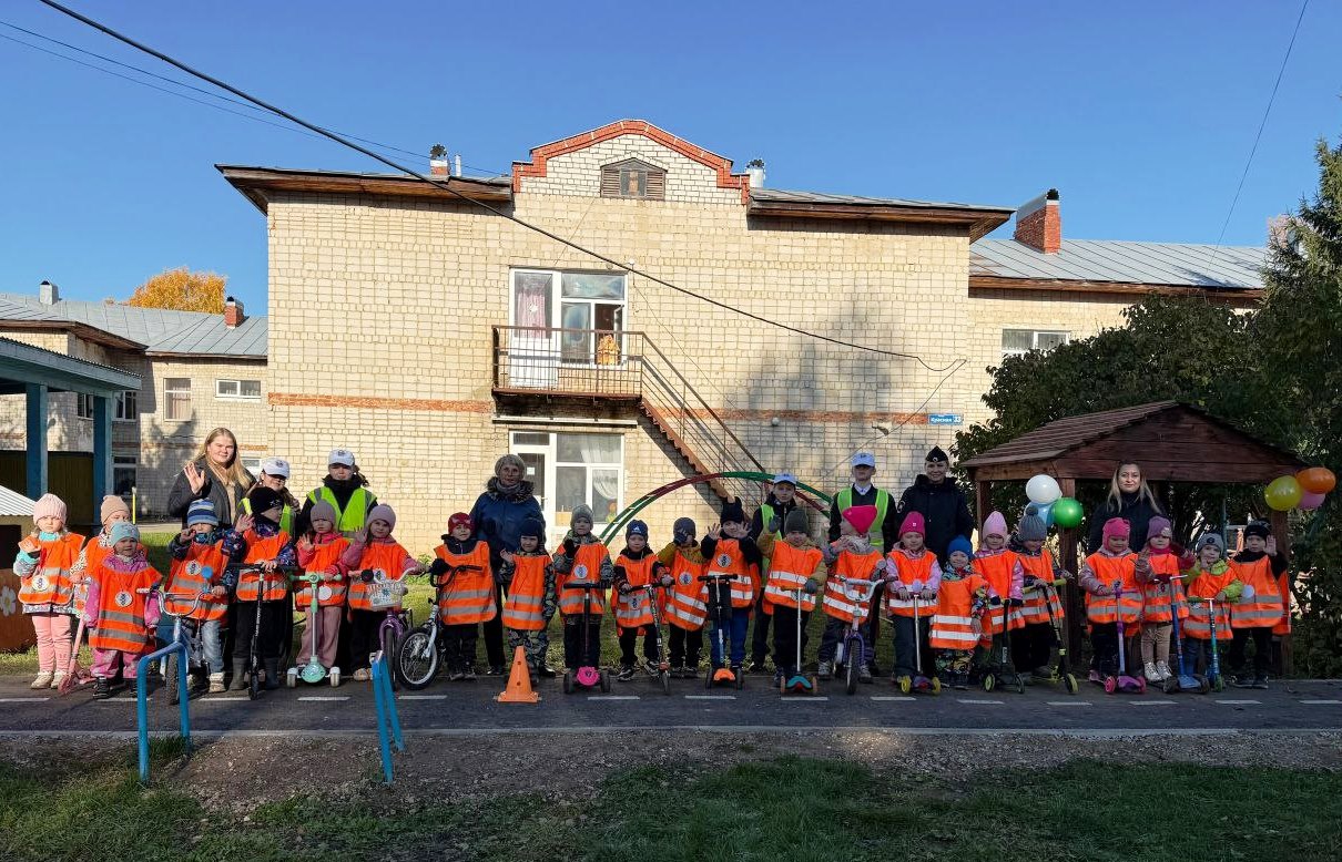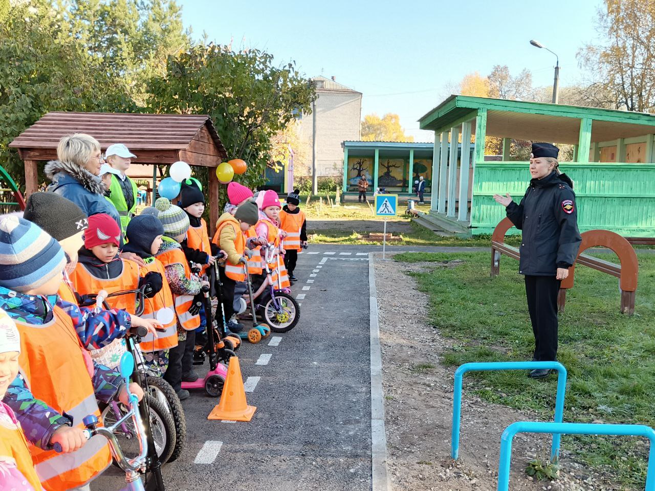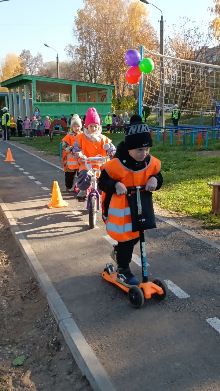 Воспитанники детского сада организованно проехали на велосипедах и самокатах, после чего приняли участие в первом занятии. Мальчишки и девчонки отгадывали загадки, соревновались в мастерстве управления самокатами, велосипедами, показывали, как правильно переходить дорогу.