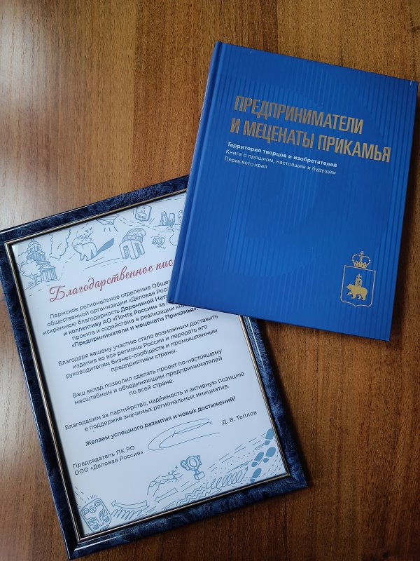 Почта России доставит юбилейное издание «Предприниматели и меценаты Прикамья» краевого регионального отделения «Деловая Россия» по всей стране. Компания выступает логистическим партнёром бизнес-сообщества в рамках соглашения сторон, подписанного на Пермском инженерно-промышленном форуме — 2024.