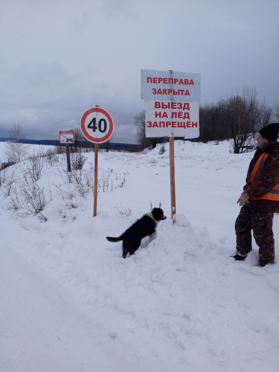 Движение автомобилей по ледовой переправе с. Насадка – д. Мостовая приостановлено