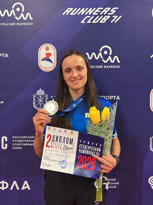 Полина Гридина, студентка строительного факультета, успешно выступила в дисциплинах и дважды поднялась на вторую ступень пьедестала. Серебряные награды она завоевала в беге на 2000 метров с препятствиями с результатом 6.43,92 и на дистанции 3000 метров, показав время 9.56,96.
